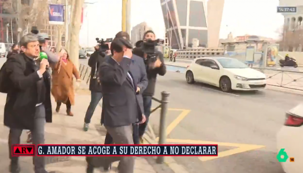 Sin embargo, la imagen de su comparecencia ha tenido lugar a la salida. González Amador ha sufrido un pequeño golpe en la cabeza al darse con un cámara, que ha chocado contra una farola de forma accidental cuando le abordaba una quincena de periodistas. El novio de Ayuso ha denunciado haber sido agredido por La Sexta. Sin embargo, en las imágenes se observa que el cámara de televisión se tropieza con una farola, lo que le impide continuar caminando y ahí es cuando González Amador se da el golpe.