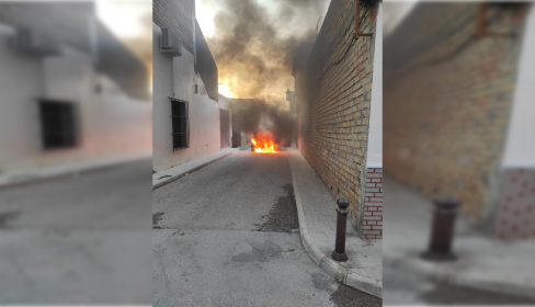 Un incendio de un vehículo en Puerto Serrano en la calle Pintor Murillo con la esquina de la calle Marciago alertaba a los vecinos de la localidad la tarde del miércoles. El coche empezó a arder por la parte delantera y, cuando llegaron los bomberos, ya estaba todo cubierto de llamas.