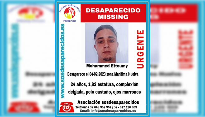 El 4 de febrero fue el día que se le vio por última vez. Desde entonces, no se sabe nada del paradero de Mohammed Ettoumy, un joven de 24 años de edad que desapareció en la zona marítima de Huelva.