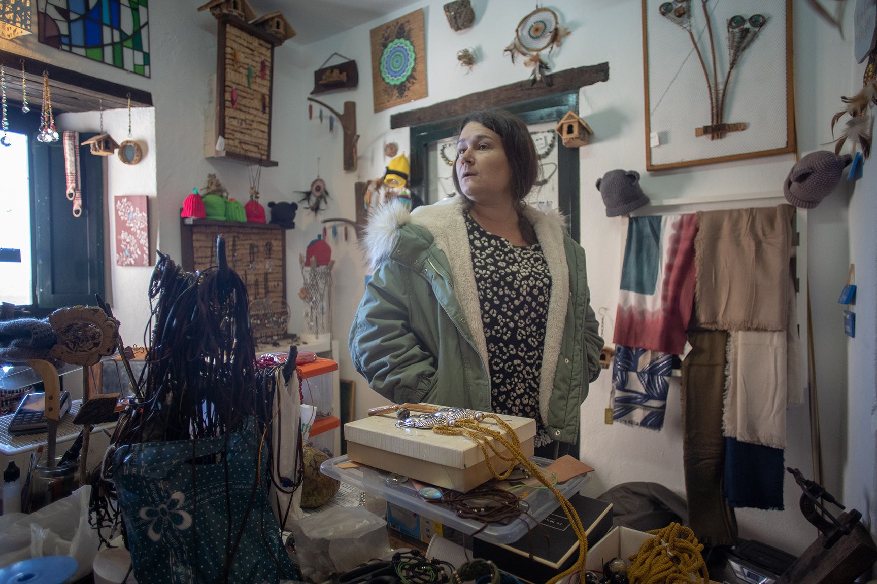 Rocío y Fernando son unos de los escasos ejemplos de parejas jóvenes que viven en Castellar Viejo. Con una niña pequeña, los padres de Rocío, sevillano y francesa, llegaron a la cima del cerro en el 78. En aquel momento, el pantano recién construido desalojó muchas de las viviendas de la fortaleza y sus residentes se mudaron ladera abajo al nuevo Castellar de la Frontera, donde contaban con nuevas comodidades como saneamiento, agua, luz eléctrica. Sin embargo, aquel enclave medieval se llenó de hippies. "Aquí empezaron a venir muchos extranjeros, y ocupaban en una época las casas, pero los dueños tomaron medidas… Esto cogió un estigma de hippie, venían extranjeros, y a los del pueblo les parecía gente rara, que se bañaban desnudos, tenían una mente mucho más abierta… los hippies eran en realidad niños de papá, pudientes, no todo el mundo podía comprarse una casa en el castillo y retirarse", cuenta Rocío, que regenta una tienda de regalos y complementos en una de las estrechas y blanqueadas calles de la fortaleza gaditana.