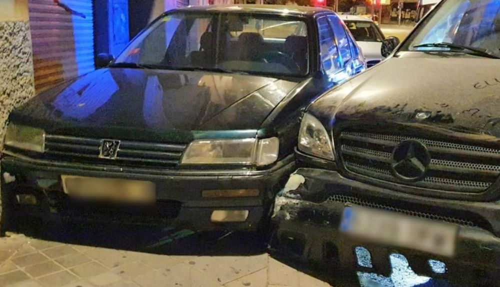 Sobre las 4:00h el conductor de este Mercedes, de 40 años, que circulaba por Ctra de Málaga, invade la glorieta choca con una jardinera y arbolado, continúa hacia placeta de Marte y choca con un coche estacionado. El conductor se baja del vehículo y se da a la fuga. pic.twitter.com/orahbtC899