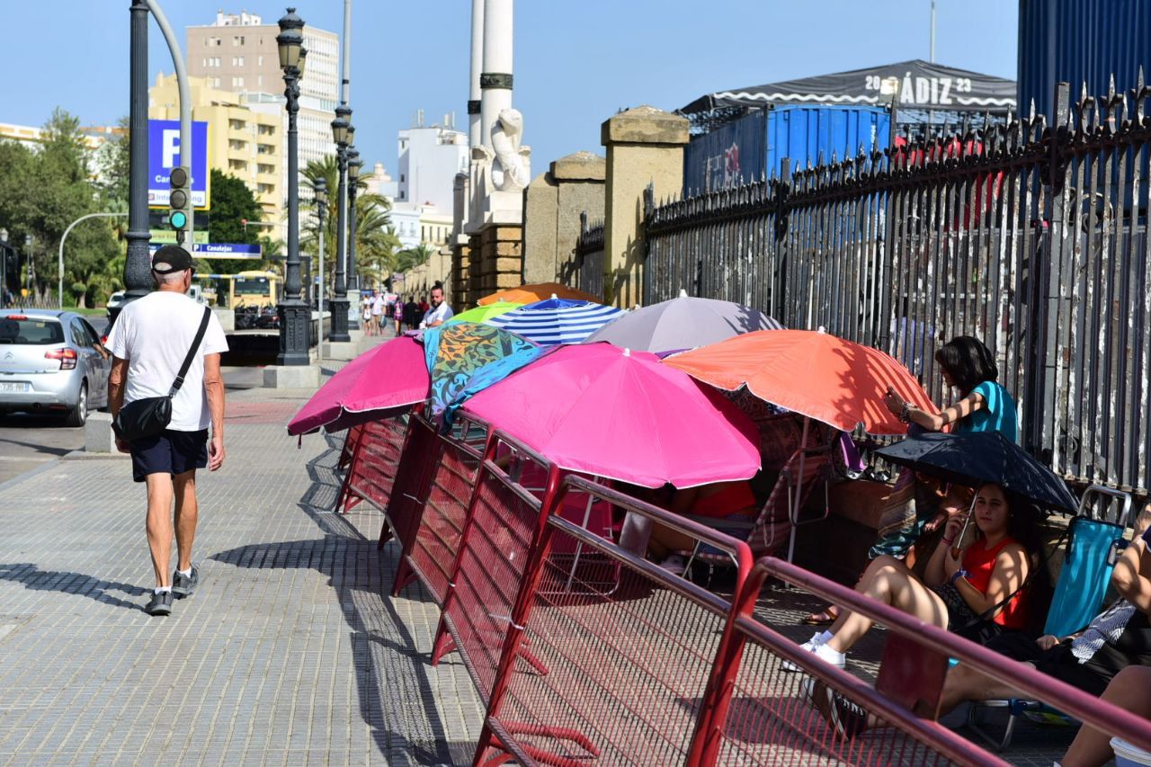 Que los termómetros superen los 33 grados no ha sido excusa para que sus seguidores esperen más de 24 horas de cola para poder verlo de cerca. Aunque algunos van equipados con sombrillas y neveras, desde la organización van a facilitar agua y asistencia médica para quien lo necesite ante el peligro de esperar a pleno sol durante toda la tarde del viernes. Los primeros en llegar fueron dos jóvenes a las 21.30 del jueves, dispuesto a ver al cantante onubense en primera fila y no perderse ni un detalle.