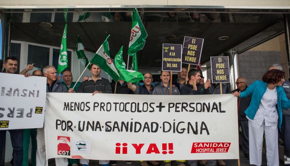 El personal no sanitario del Hospital de Jerez no da a basto. Por ello, los sindicatos Confederación General del Trabajo (CGT) y Sindicato Independiente de Celadores (SIC-USO) se han organizado para llevar a cabo cuatro jornadas de concentraciones (hasta el 30 de noviembre) a las puertas del centro hospitalario, para exigir un refuerzo de las plantillas. Desde SIC-USO denuncian que el Hospital de Jerez, que atiende a casi 250 urgencias a diario, es el único centro de la provincia de Cádiz que cuenta con tan solo cinco celadores. "Todos los demás tienen seis", aseguran.