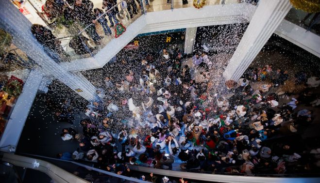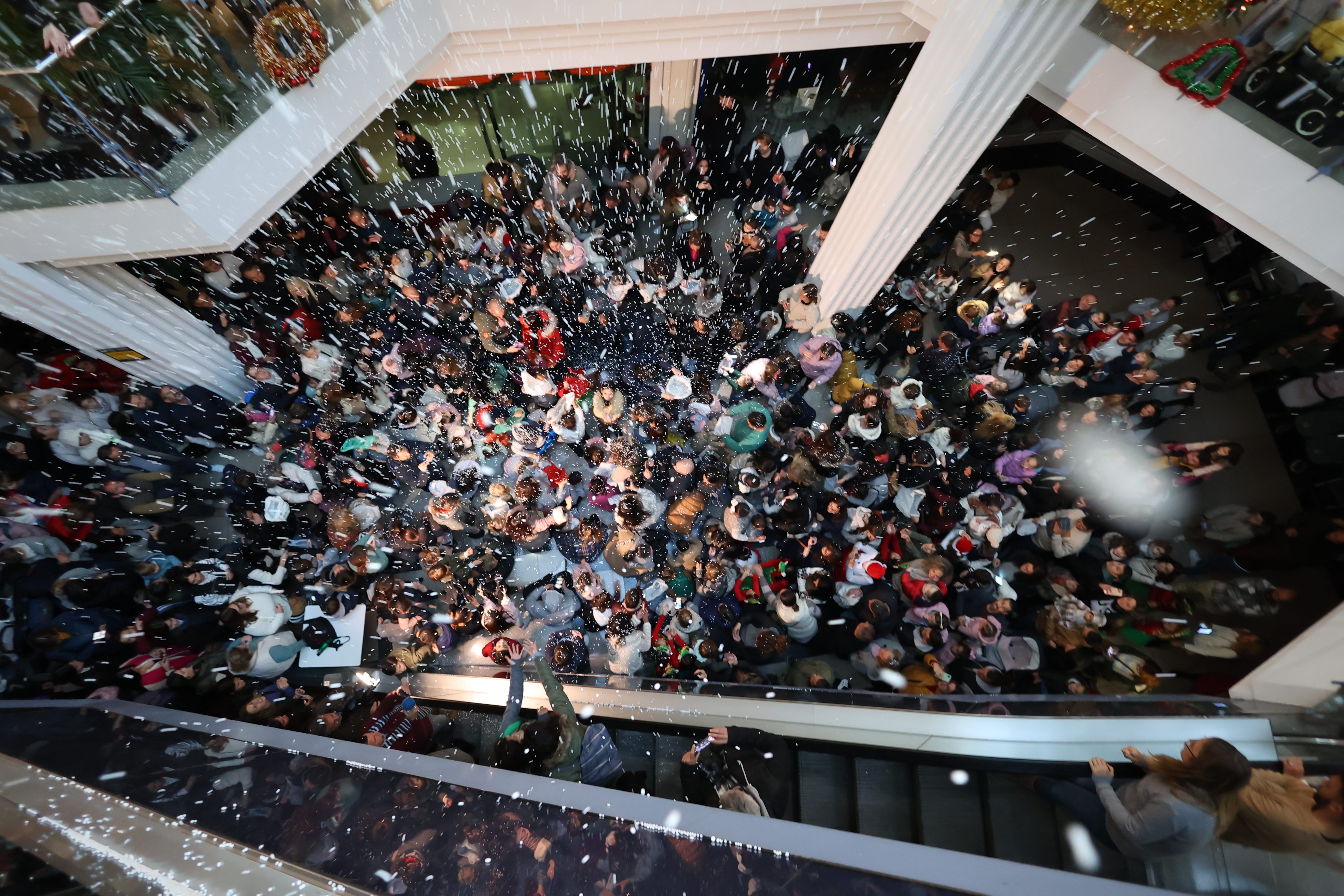 Como siempre, la planta baja del centro se llenó para ver caer esos copos de nieve que con tanta ilusión se reciben por los niños. También en las plantas superiores había personas que no se querían perder una costumbre que es de obligado cumplimiento para muchos cuando llegan los días navideños.