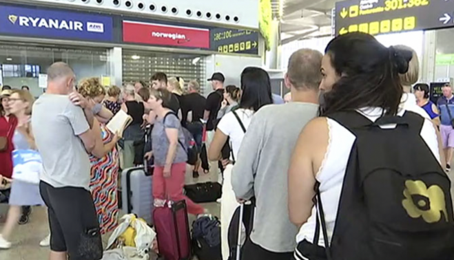 El aeropuerto de Málaga-Costa del Sol es el que más se ha visto afectado este pasado domingo por la huelga de Ryanair, que acumulaba hasta las 19.00 horas, un total de 20 vuelos cancelados con origen o destino en esta base. Las colas y la indignación de cientos de usuarios era patente en la terminal de la Costa del Sol.
