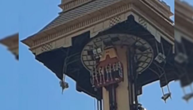 Justo en la parte más alta, la atracción dejó de funcionar. La caída libre que debió hacer no se realizó y los usuarios quedaron suspendidos.