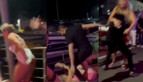 Fruto de estas acciones, las jóvenes quedaron tiradas por el suelo y con el culo al aire, ya que se les subió el traje que llevaban. La red SocialDrive ha compartido el vídeo de la trifulca.