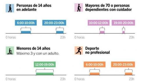 a) La práctica de deporte individual y los paseos solo podrán llevarse a cabo entre las 6:00 horas y las 10:00 horas y entre las 20:00 horas y las 23:00 horas.