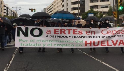 Más de 400 trabajadores y trabajadoras de la empresa Cepsa refinería La Rábida en Huelva se han concentrado ante la sede de la compañía para reivindicar sus derechos ante las medidas que está imponiendo de manera unilateral, y en contra del sentir de la plantilla. CCOO ha explicado que la empresa “se ampara en un ERTE firmado en septiembre de 2020 con UGT, STR y USO en el que se contemplaban unas medidas que CCOO no firmó al entender que éstas iban en contra de los derechos laborales y perjudicaban el empleo y la conciliación”.