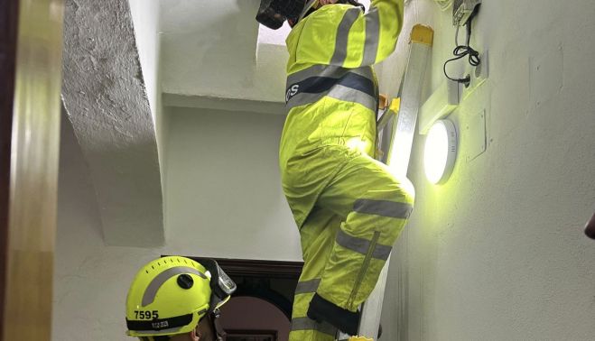 Segunda vez en menos de un mes que tienen que ir los bomberos al barrio de La Asunción en las viviendas que están siendo rehabilitadas. El problema ha sido en esta ocasión que las cubiertas no desaguan y ha provocado de nuevo desperfectos importantes.