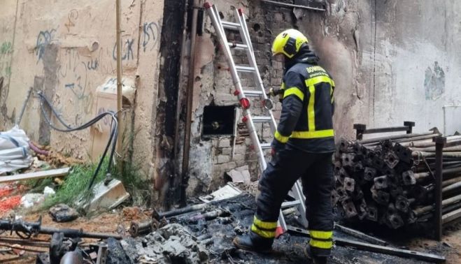 El fuego se produjo en la zona de paso entre un edificio en obras y dos bloques habitados de la Avenida Ana de Viya. Ardieron restos de aislante de poliuretano y de maderas que había en la zona.