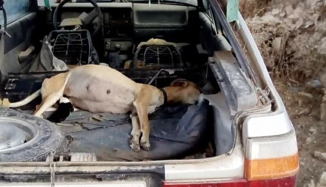Galgos del Sur denuncia las terribles condiciones de una galga y sus cachorros que viven en el maletero de un coche. La galga, que dio a luz cachorros, se encuentra según averiguaciones de la protectora en Xixona en Alicante, malvive atada con una cadena dentro de un maletero de un coche viejo en condiciones higiénico-sanitarias lamentables.