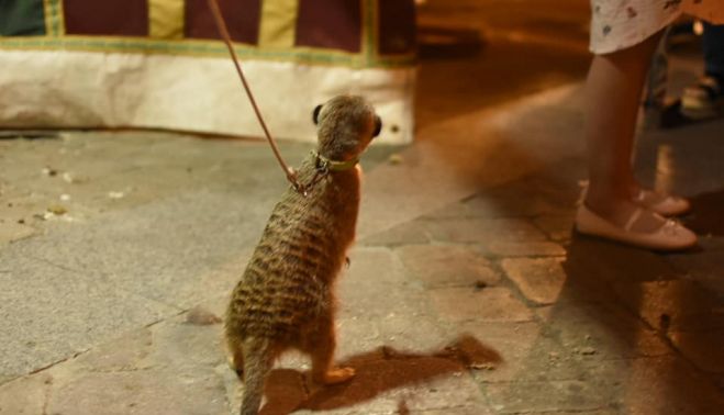 Una activista por los derechos de los animales denuncia, a través de las redes, que el mercado medieval, celebrado en la Alameda Vieja de Jerez, exhibió a una suricata amarrada, a una pitón "enorme metida en un cubo muy pequeño que sueltan en el suelo cerca de niños pequeños y un cachorro de perro que apenas tiene la cuarentena".