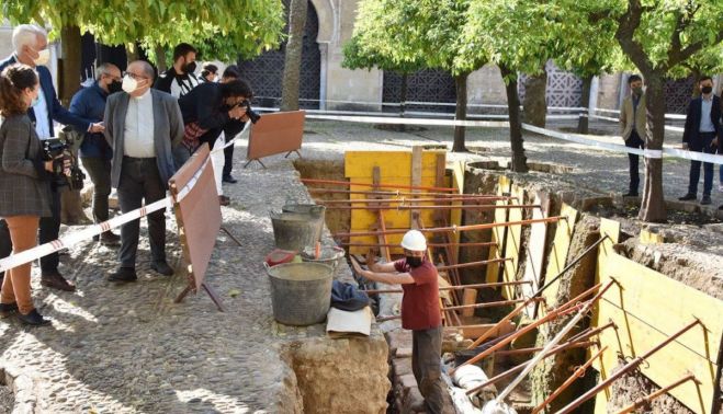 Los primeros resultados de las excavaciones que se llevan a cabo en el patio de los Naranjos de la Mezquita-Catedral de Córdoba han salido a la luz. El profesor de la UCO, Alberto León, y el arqueólogo, Raimundo Ortiz, dirigentes del proyecto, han destacado como elemento más importante los restos de una fachada de un gran edificio que ya estaba levantado en el siglo V, que fue monumentalizado.