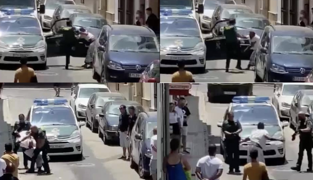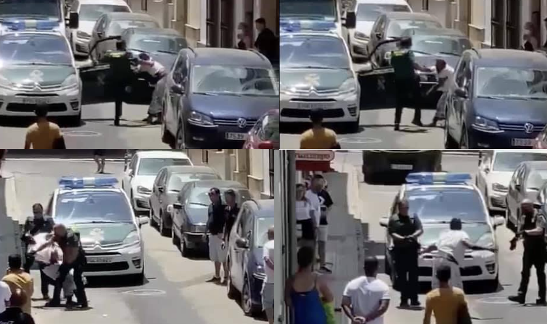 Los vecinos llamaron a las Fuerzas y Cuerpos de Seguridad del Estado y al lugar llegó una patrulla de la Guardia Civil. En el vídeo que se ha difundido en las redes sociales se ve como uno de los agentes le pega una patada en el abdomen y le da un manotazo y, después, su compañero le hace una zancadilla por la espalda y la empuja para derribarla y hacerla caer al suelo.