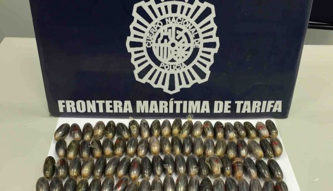 La Policía Nacional ha detenido en el Puesto Fronterizo Marítimo del puerto de Tarifa a un ciudadano marroquí de 56 años de edad como cuando supuestamente trataba de introducir 148 bellotas de hachís en territorio español ocultándolo en el interior de su estómago.