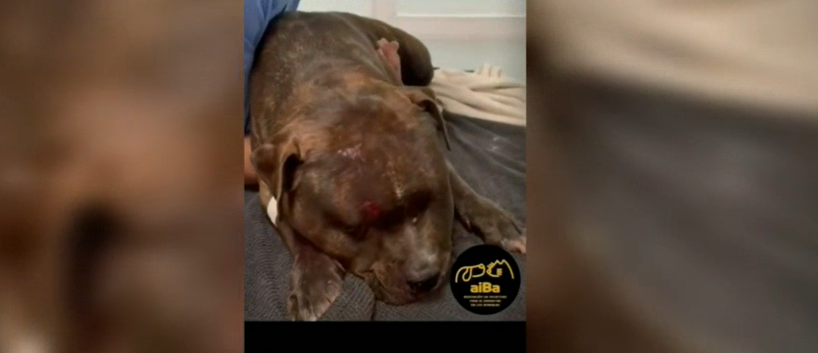 El animal, un perro de raza pitbull, sufrió diversas heridas que fueron atendidas en un primer momento en una clínica veterinaria de la localidad, para luego pasar a un centro especializado. En la actualidad se está recuperando gracias a la Asociación Aiba que se ha hecho cargo de él.