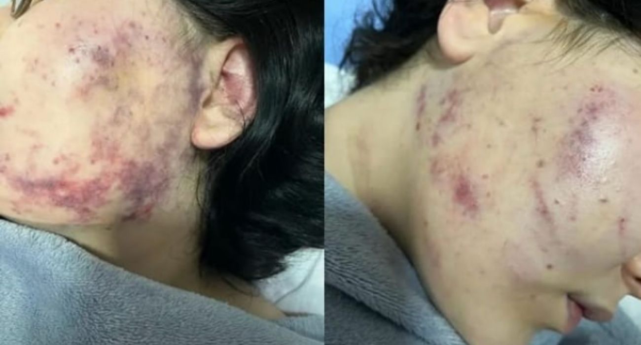 Como acredita el parte médico presentado en la denuncia realizada en la Comisaría de Jerez, son múltiples las contusiones que sufre, con hematomas e importantes lesiones en la mama izquierda, el abdomen, la dorsal izquierda, la lumbar derecha, en los muslos y en la rodilla. Al desplazamiento de mandíbula que ha sufrido hay que sumar las numerosas mordeduras recibidas. "Mi hija tiene contados más de 50 bocados", confiesa su madre.
