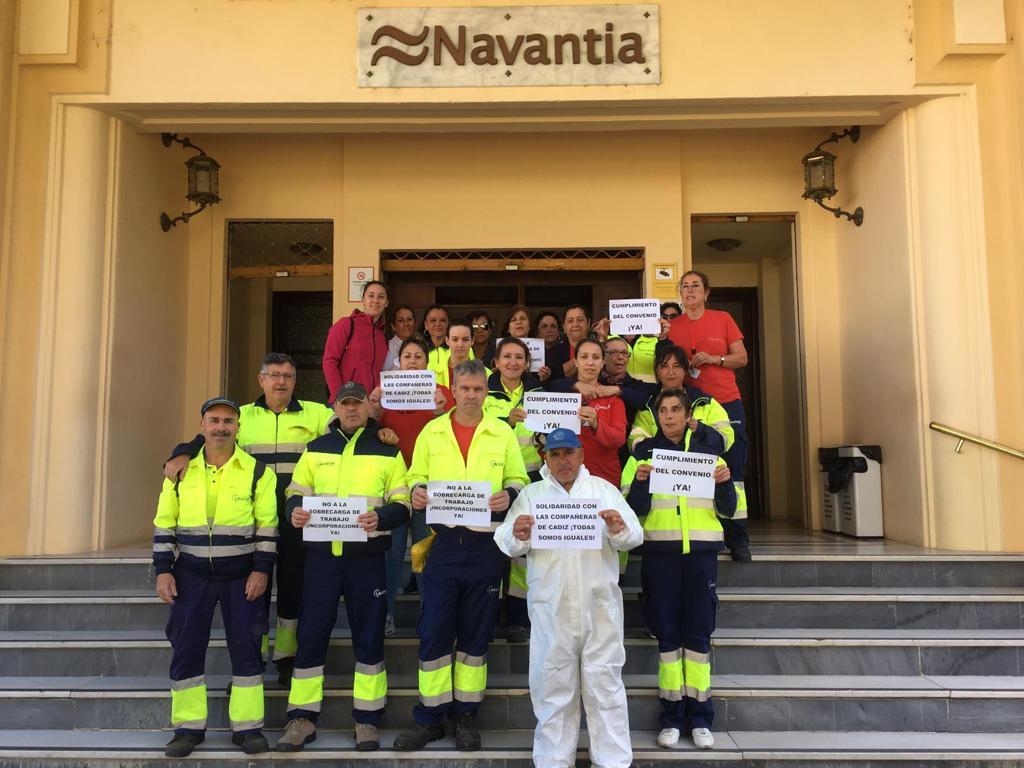 Las limpiadoras de Acciona Facility Services, subcontrata de Navantia, llevan concentrándose frente a la dirección del astillero gaditano cada martes y jueves desde el pasado 25 de febrero. ¿El motivo? 36 trabajadoras —solo cuatro son hombres— del sector de la limpieza "blanca" de Navantia, en Cádiz y San Fernando, denuncian que desde que la empresa se subrogó el 1 de mayo de 2017, incumple "las condiciones de subrogación establecidas en la licitación del contrato".