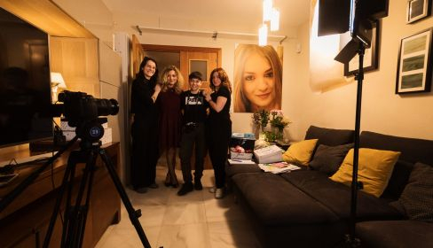 Ella, junto a Patricia Solana, de 21 años, natural de Arnedo, en La Rioja, y Anca Elena Bordeianu, rumana residente en Cataluña, de 22, están realizando un acto de amor. Estas amigas y compañeras de clase están en plena elaboración de un documental dedicado a esta joven. Las tres, que cursan el último año del grado de Comunicación Audiovisual en la Universidad Complutense de Madrid, han decidido hacer un Trabajo de Fin de Grado conjunto en su memoria.