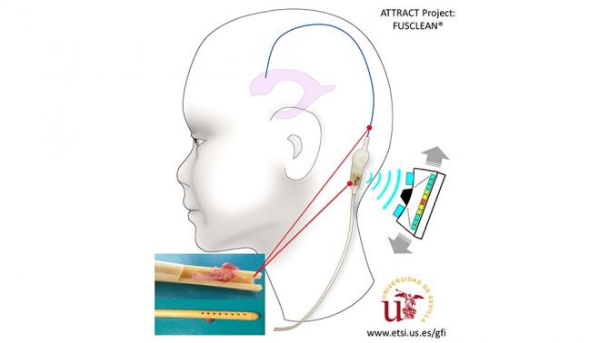 El proyecto de los científicos sevillanos, vinculados a la Universidad de Sevilla y al Hospital Universitario Virgen del Rocío, se titula "Diseño inicial y prueba de concepto de un dispositivo de mano, basado en la combinación de imagen óptica y ultrasonidos enfocados, para la limpieza no invasiva de los dispositivos de derivación de líquido cefalorraquídeo implantados en pacientes con hidrocefalia". Y al dispositivo en cuestión lo han llamado "Fusclean"·