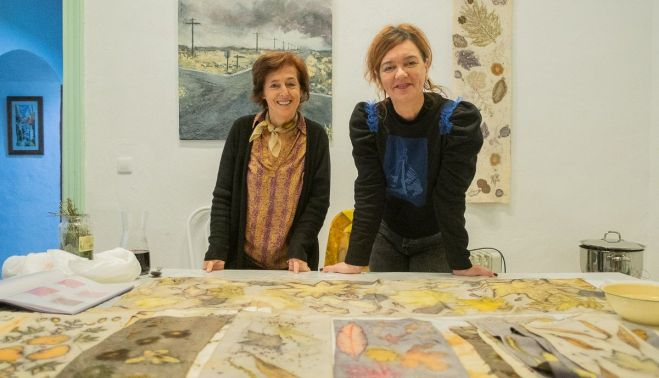 Pese a llevar sólo dos meses y medio, lo han vendido todo en su primera muestra al público en el reciente mercadillo navideño del Soho Boutique & Spa, antiguo Hotel Los Jándalos. “Llegamos a las ocho de la tarde prácticamente sin nada”, comenta Consuelo García-Pelayo, que abre las puertas de su taller, situado en una de las habitaciones superiores del palacio que alberga el café bar Damajuana. Allí, junto a su vecina, amiga y ahora socia Yolanda Ramírez, recibe a lavozdelsur.es entre pañuelos, cojines y visillos elaborados mediante la original e innovadora técnica de la estampación botánica.