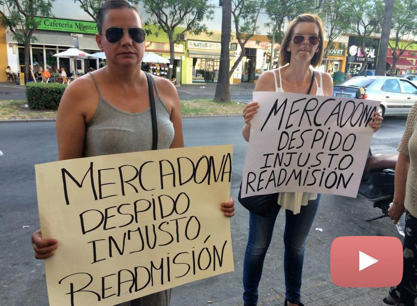 Mercadona, que hablará con lavozdelsur.es “cuando crea conveniente”, según apunta la encargada del establecimiento, despide a ambas sin indemnización tras 16,5 años en la empresa en el caso de Mari Ángeles y seis y medio en el caso de Patricia. Desde entonces, la primera lleva concentrándose de manera periódica a las puertas del supermercado para denunciar su situación y exigir, si no su reincorporación, al menos que se la indemnice. Patricia, por su parte, no ha sido hasta ahora cuando ha querido dar el paso. “He estado en cama muy mal, con antidepresivos. Estoy divorciada y tengo dos hijos de 16 y 11 años que dependen de mí, mi familia está destrozada y la única que lleva adelante a mis hijos soy yo”, dice entre lágrimas. El caso de Mari Ángeles es parecido. Es madre soltera de una niña de 10 años y aunque le corresponde paro, considera injusto que tras más de tres lustros en la empresa ahora se vea sin indemnización por algo tan simple como comerse un mini saladito a punto de tirarse a la basura y cuando faltaban unos minutos para acabar su jornada laboral.