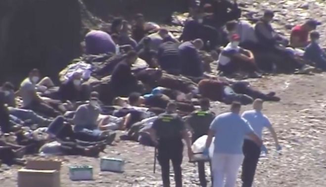 Esto ha sucedido esta mañana en #Adra (#Almería), 120 inmigrantes ilegales de origen magrebí en sus costas.