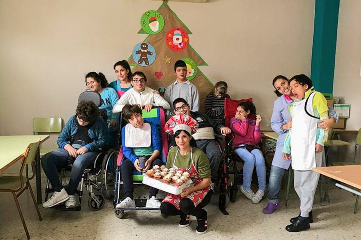 Eva Serrano junto a los chicos discapacitados de Upace. Foto: Dulcemente Eva
