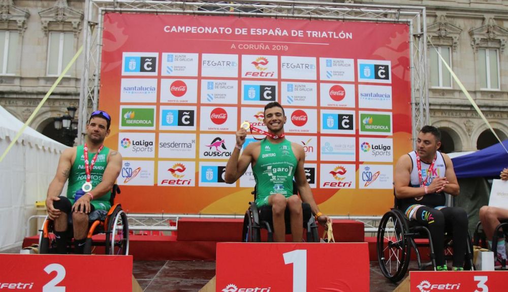 El chiclanero José Manuel Quintero se proclama campeón de España de Paratriatlón en el campeonato celebrado el pasado domingo en A Coruña, donde el deportista participó representando a Andalucía. Quintero se muestra "muy feliz", como él mismo expresa en redes sociales, por haber revalidado el título que consiguió el pasado año en este mismo lugar. Además, esta vez batió su mejor marca personal en un triatlón, logrando hacer los 750 metros de natación, 20 kilómetros de ciclismo y 5 kilómetros de atletismo en 1 hora, 11 minutos y 5 segundos.