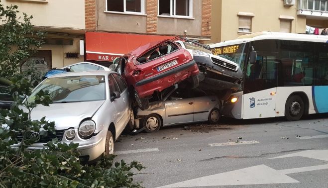 El conductor de un autobús de Málaga sufre un infarto y siembra el caos arrollando a nueve coches