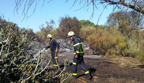 Cuando llegaron los bomberos, procedieron a acotar el perímetro de el fuego, que estaba afectando a monte bajo, pinos, acebuches y retama, controlando y extinguiendo. Se han visto afectados unos 10.000 metros cuadrados y ha sido necesario utilizar más de 40.000 litros de agua para completar la actuación, que se ha saldado sin daños personales.