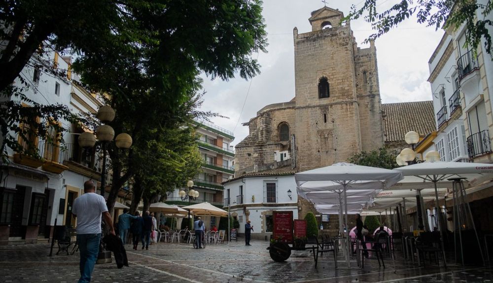 Imagen de archivo de veladores en la Plaza Plateros de Jerez.