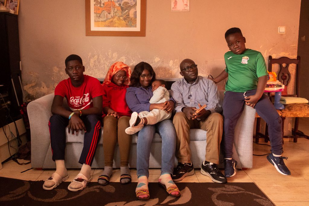 Moisés nació en Dakar, la capital de Senegal, en 1961, pero lleva residiendo en España más del doble de años que en su país natal. Desde 2000 tiene la nacionalidad española, como la mayoría de sus hijos, siete de sus once vástagos. Con cinco de ellos convive como puede en un pequeño piso del barrio de San Miguel de Jerez, una ciudad en la que reside desde hace ocho años. Mientras uno de los pequeños hace los deberes, otro duerme tapado con una manta de cuadros en el sofá que hay junto al escritorio. Los mayores ayudan en las tareas de la casa, limpian, recogen o ayudan a los pequeños con la tarea.