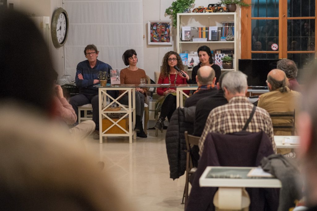 La presentación, organizada por Ganemos Jerez, de 'Utopía de la normalidad. Riace, el modelo de acogida de Domenico Lucano' en Espacio Abierto de Jerez. FOTO: MANU GARCÍA.