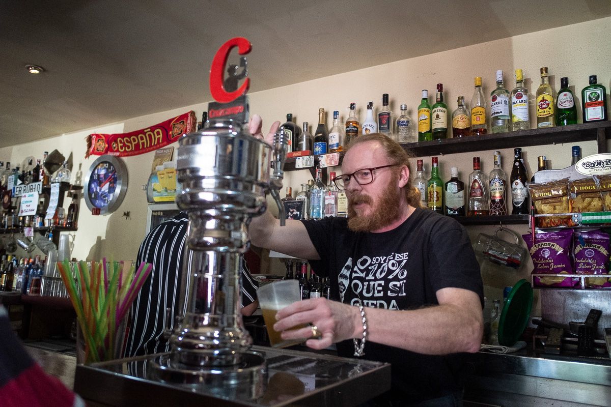 'El Rubio' despacha una cerveza bien fría en su bar. FOTO: MANU GARCÍA