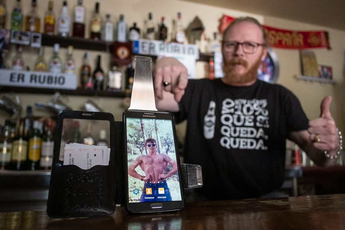 Antes de despedirnos nos confiesa que fue culturista durante más de 20 años y nos enseña una foto antigua en el fondo de pantalla de su móvil. En la instantánea sale un chico joven, también pelirrojo, hipermusculado, al más puro estilo Arnold Schwarzenegger. Se identifica con él: “Ese era yo; pasaba horas y horas haciendo deporte. Tenía mucha vitalidad. Después de eso practiqué taekwondo durante tres años, pero al final lo dejé porque tenía que atender en el bar”. Es la cara desconocida de un tipo ciertamente peculiar, que ha hecho de su bar su segunda casa. La de él y la de muchos otros.