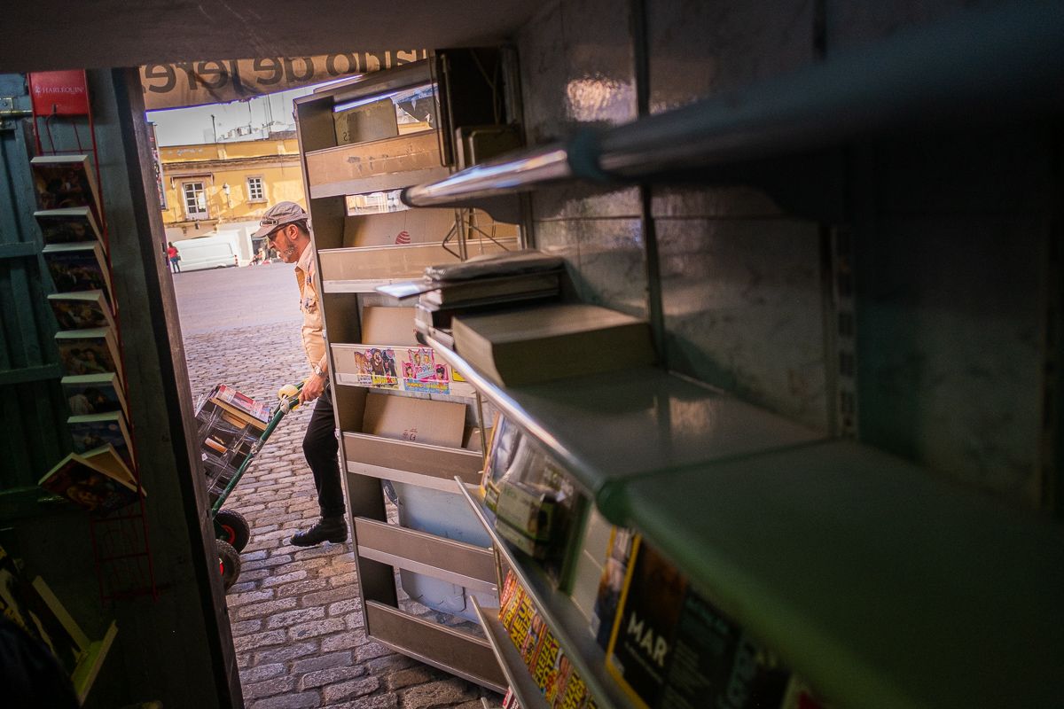 Este lunes hay frío sol de invierno, los expositores están vacíos, no hay prensa extranjera. Quedan puñados de revistas amontonadas y algunas todavía tan bien colocadas como ayer. En el interior del quiosco, Mario ha comenzado el desmontaje y prepara a marchas forzadas las devoluciones de los ejemplares no vendidos. Sigue la despedida a cada minuto de la conversación con este medio:
