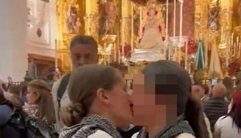 El amor libre ha tenido un hueco este fin de semana en el Santuario de Nuestra Señora del Rocío, en Huelva. Entre los numerosos peregrinos que se encontraban en la ermita, ha tenido lugar una escena que se ha vuelto viral en las redes sociales.