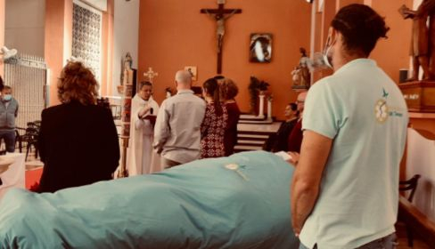 Sin embargo, lo que "era imposible" para su mujer Loli, se ha convertido en realidad gracias a la Fundación Ambulancia del Deseo, que se desplazó desde Murcia hasta Córdoba para ayudar a la familia en el traslado, de dos kilómetros, desde la casa de José Antonio a la referida iglesia.