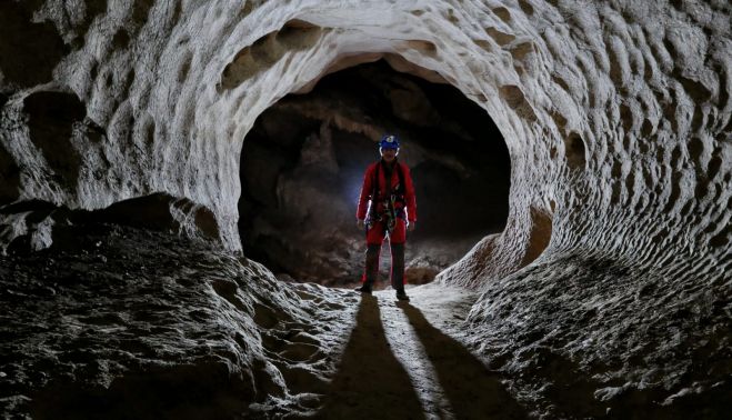 Foto: GIEX"Hoy que parece que todo ya está explorado, siguen habiendo sitios, en la misma provincia de Cádiz, donde poder poner los pies en lugares donde nadie los ha puesto", reconoce. No hace falta ir a la luna. Y eso que la tradición por la espeleología en la zona se remonta a hace más de medio siglo, cuando en 1954 el grupo Montesinos descendió la Sima de Villaluenga con un torno de hierro construido por Antonio Casas Oñate, lo que constituye para GIEX "una auténtica proeza al no tener los equipos actuales". Este grupo cogió el testigo de Montesinos en los años 70, con las exploraciones del Peñón de la Motilla, llegando a conectar casi diez kilómetros de sus galerías.