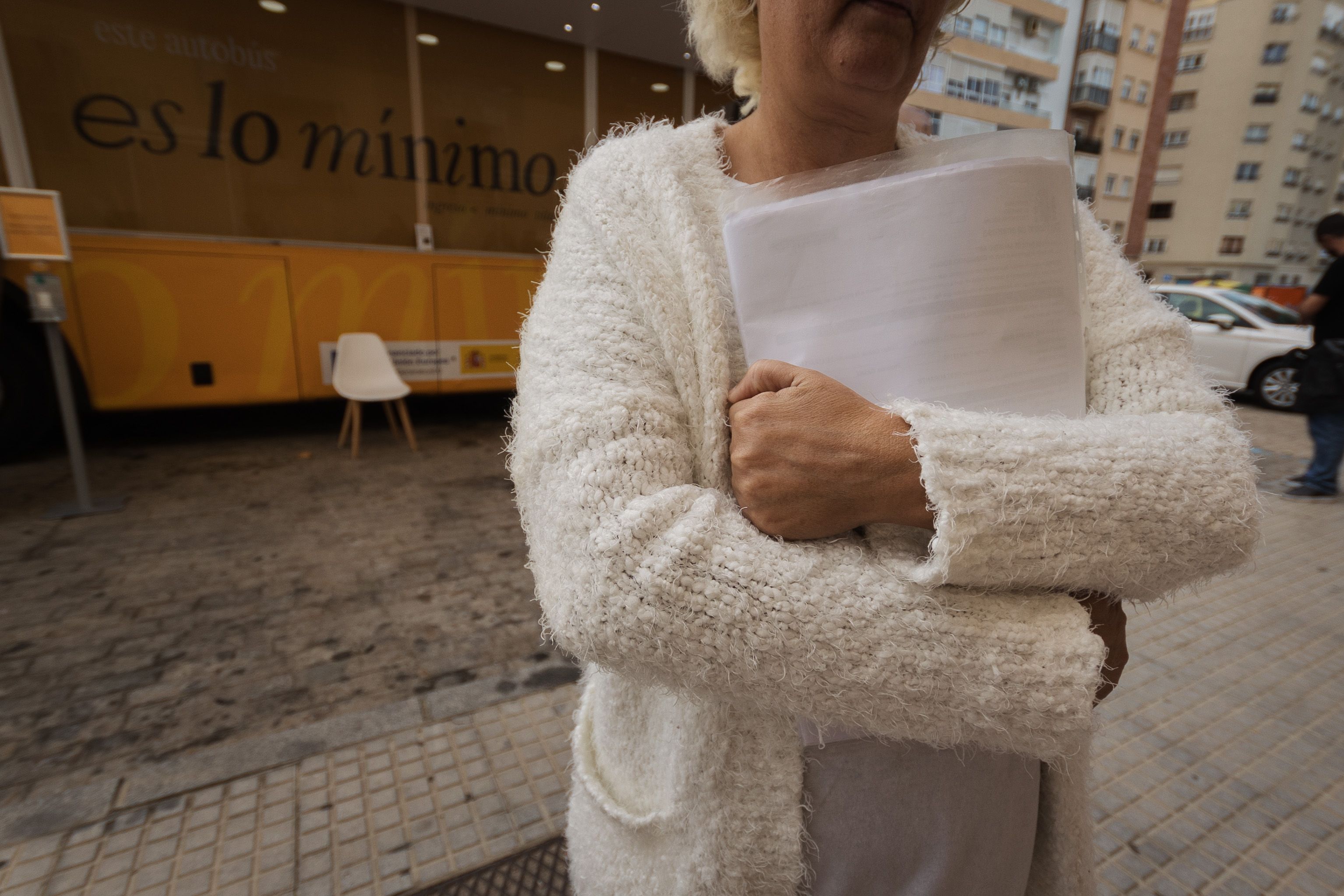 En la cola para acceder al autobús aparcado en la plaza Asdrúbal también se encuentra un gaditano, que no da nombre, que hace meses que solicitó el IMV. Hace cuatro años que no trabaja con contrato, aunque de vez en cuando hace "chapús" de pintura, albañilería... "Lo que salga, está la cosa como para escoger", comenta. Iba circulando con el coche, cuando vio de refilón el autobús, y decidió acercarse para informarse, en vista de que su situación no tiene visos de mejorar. "Antes trabajaba en la construcción, en una fábrica... pero vino la cosa chunga. Lo han quitado todo", señala.