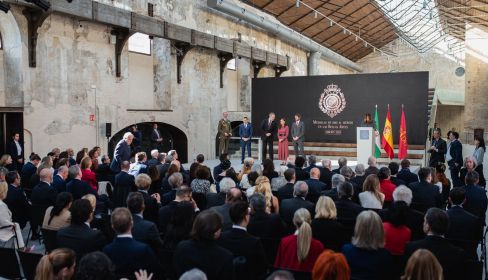 Los Reyes de España han presidido un acto, celebrado en la Real Fábrica de Artillería, en el que han intervenido el presidente de la Junta de Andalucía, Juan Manuel Moreno; el alcalde de Sevilla, José Luis Sanz; y el ministro de Cultura, Ernest Urtasun.