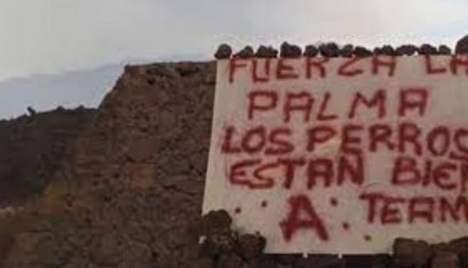 La zona donde se encontraban los perros estaba rodeada de lava y solo se podían acercar a ellos, para darles comida y agua, unos drones. Sin embargo, la sorpresa ha saltado cuando se ha podido ver la pancarta y la aparición de unas huellas humanas en la zona.
