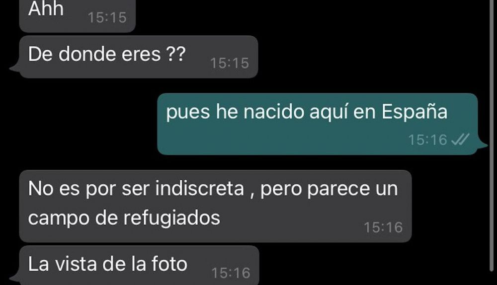 “no es por ser indiscreta, pero parece un campo de refugiados” ¿en qué momento dejas de alquilarle una habitación a una persona por su foto de perfil? después que no hay racismo en España, cuando todos los días nos exponemos a esto pic.twitter.com/V3b1nPS1w0