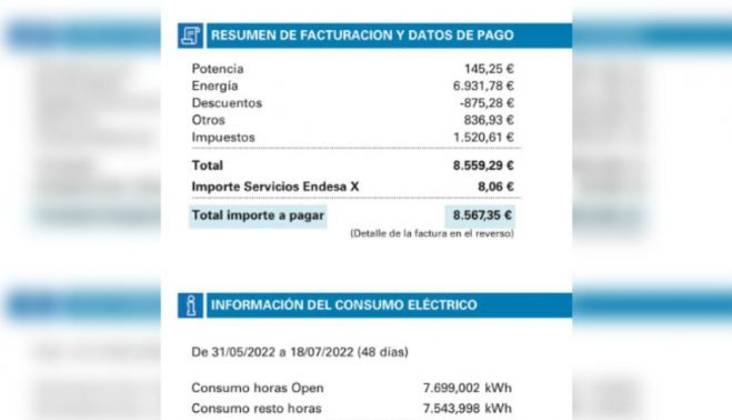 La cifra es estratosférica: 8.567, 35 euros. "El año pasado, el recibo más caro quizás fue de 3.500 euros en pleno agosto y con todo funcionando. El aire acondicionado estaba puesto las 24 horas. Este mes de junio no he puesto el aire ni un solo día", cuenta Yolanda, que ha visto que en un año la factura de la luz se le ha triplicado.