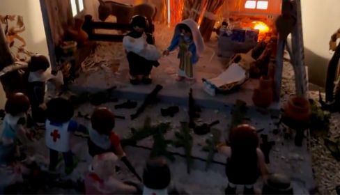 Mi suegra, a sus más de 80 años, todas las navidades pone un belén diferente que construye ella. El de este año es especialmente sobrecogedor sobre la situación en Gaza.