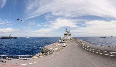 Además, el ejercicio tendrá una dimensión internacional, pues se incorporará durante tres días una fuerza anfibia italiana compuesta por el portahelicópteros Garibaldi y el buque anfibio San Giorgio, quienes portarán una fuerza aérea y de infantes de marina del mismo país. Su participación servirá para añadir complejidad a los escenarios practicados y para poner a prueba la interoperabilidad de las unidades de ambas marinas.