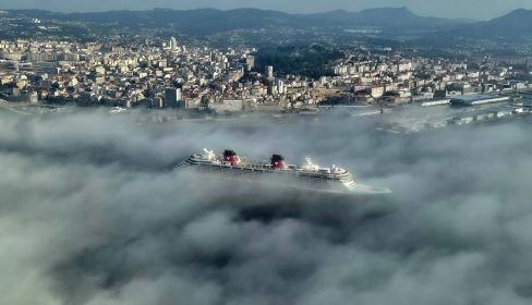 El Disney Fantasy, uno de los buques insignia de la naviera Disney Cruise Line, continuó su ruta hacia A Coruña, donde atracó de madrugada tras el incidente.