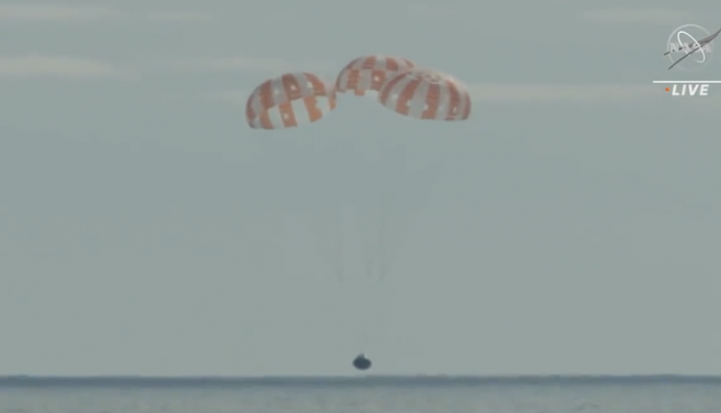 La nave Orion de la misión Artemis I de la NASA regresó a la Tierra este domingo tras 25 días de misión a la órbita lunar, con un amerizaje programado a las 17.40 UTC en el Océano Pacífico cerca de la Isla Guadalupe frente a la costa de Baja California.